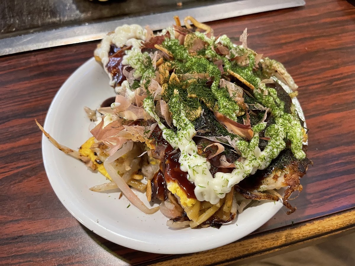For those who enjoy a bit of variety, the Mixed Okonomiyaki is an excellent choice. This dish combines the best of both worlds, featuring a delightful mix of ingredients in a savory pancake that perfectly captures the essence of the dish. Pair your meal with a refreshing 生ビール (draft beer) to complete your dining experience-it's the perfect way to wash down the rich flavors of the okonomiyaki and yakisoba.